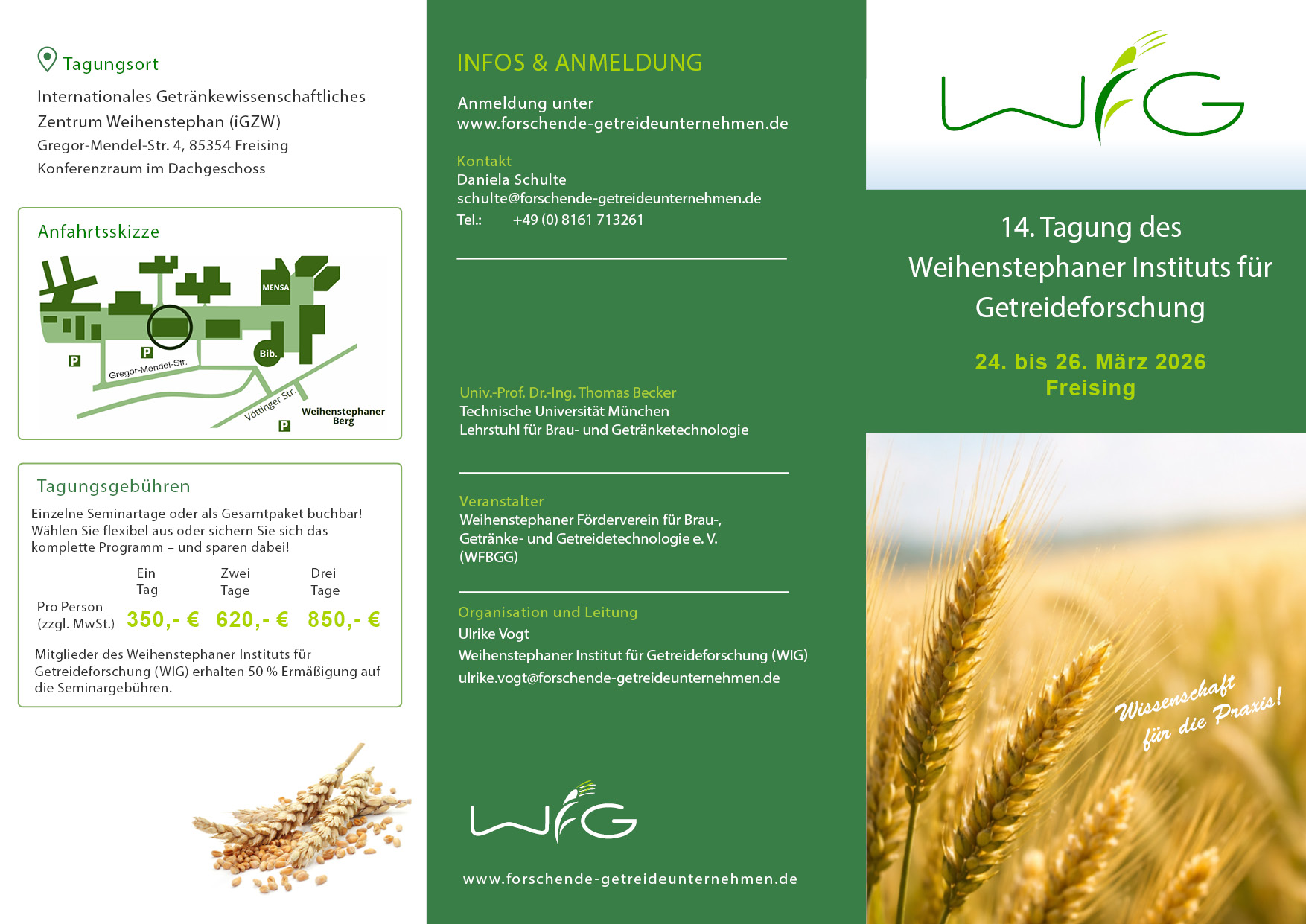 Verbindliche Anmeldung zur 14. Tagung des Weihenstephaner Institut für Getreideforschung